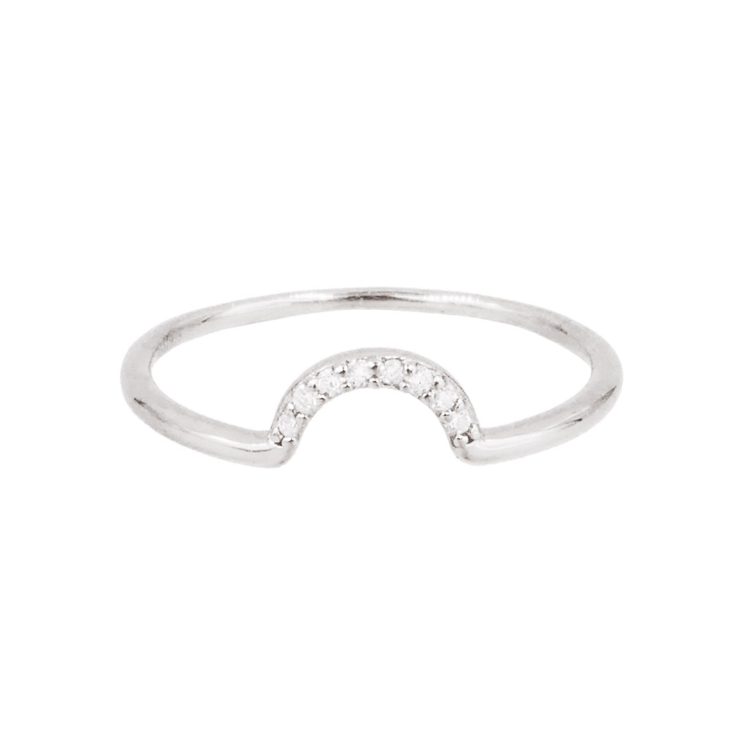 A dainty and delicate arch ring is adorned with clear cz accents. We love this little ring worn in a stack and it looks equally cool all by itself. So cute and simple enough for everyday. Available in gold or silver. Wear it stacked with our Opal Solitaire ring.