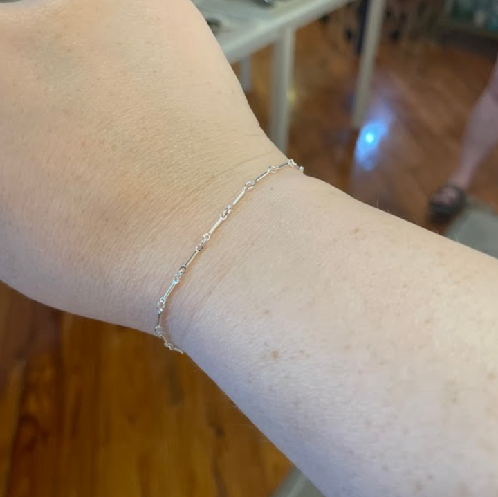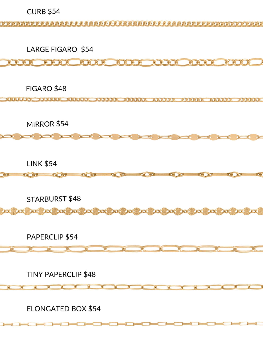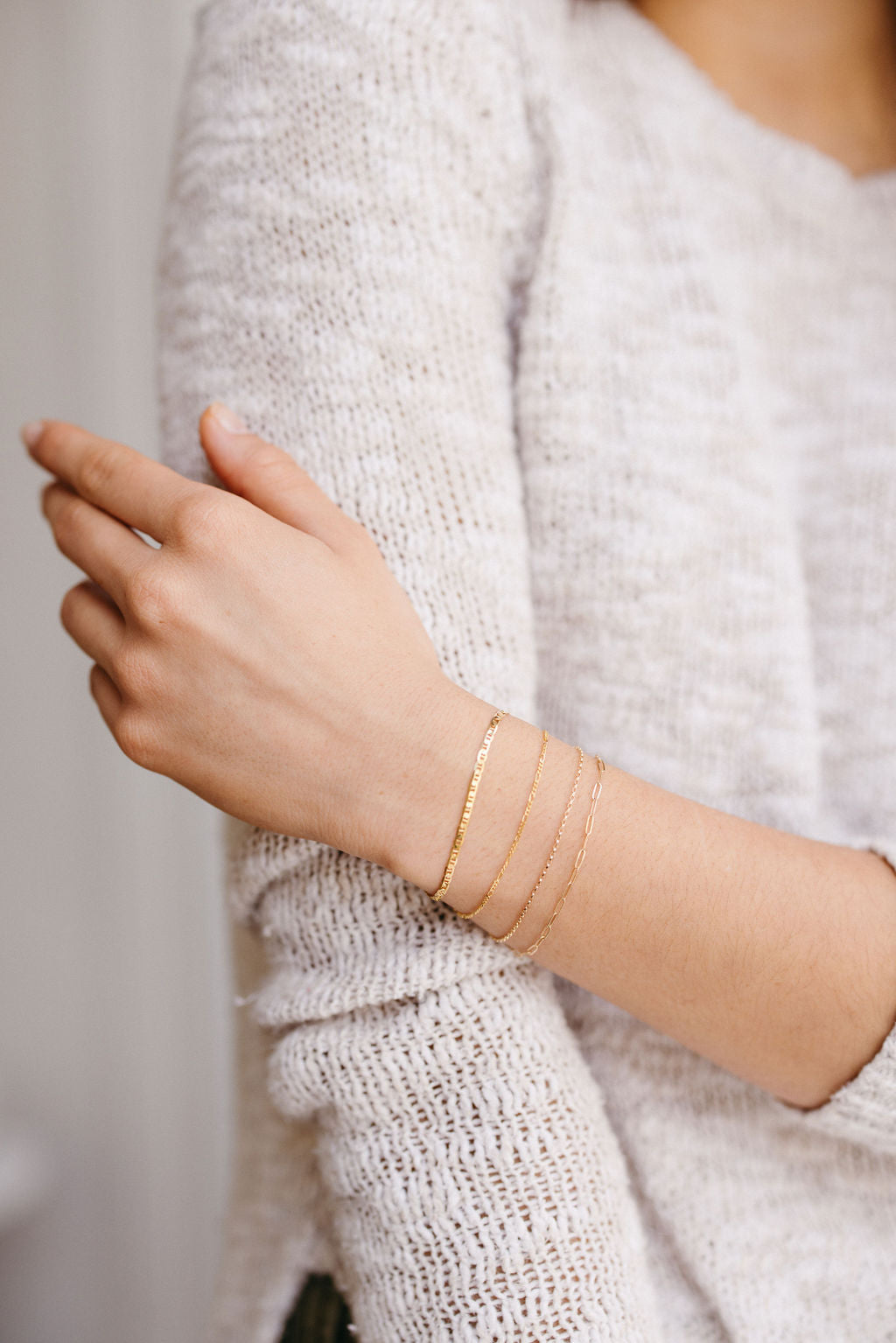 Our limited-edition Mini Bar Chain is here for Fall. Featuring delicate rectangular bars cascading along a sturdy cable chain in your choice of 14kt gold-filled or sterling silver chain. $54 while supplies last.