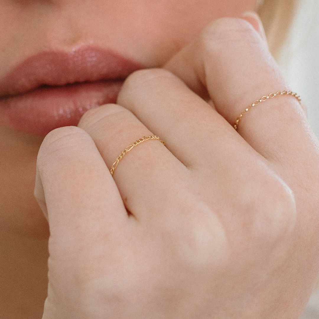 Our permanent rings are super dainty and the perfect addition to your stack. Choose any of our chains to create the perfect-fitting permanent ring made just for you. $22 for gold filled + sterling silver and $32 for 14kt solid gold.
