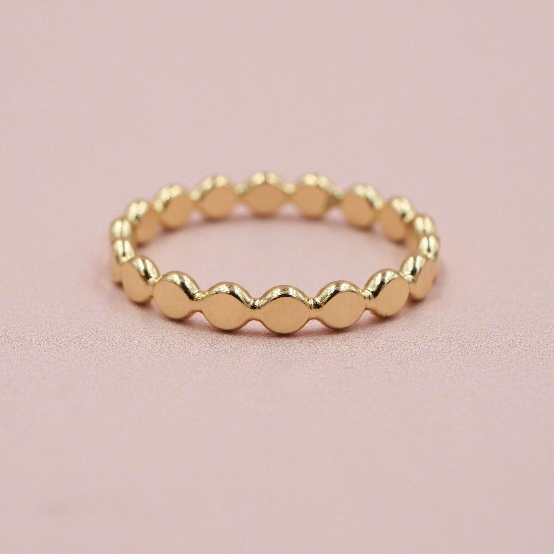 Sparkle and shine with this charming Large Gold Dotted Ring. Featuring connected circles of radiant gold on a durable band, this 14kt gold filled ring is both stylish and waterproof.