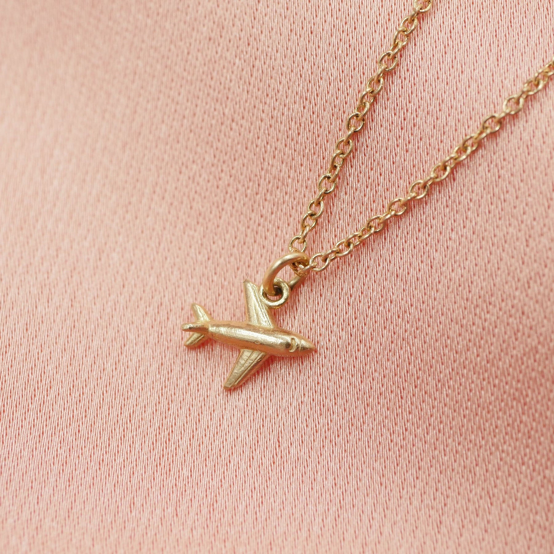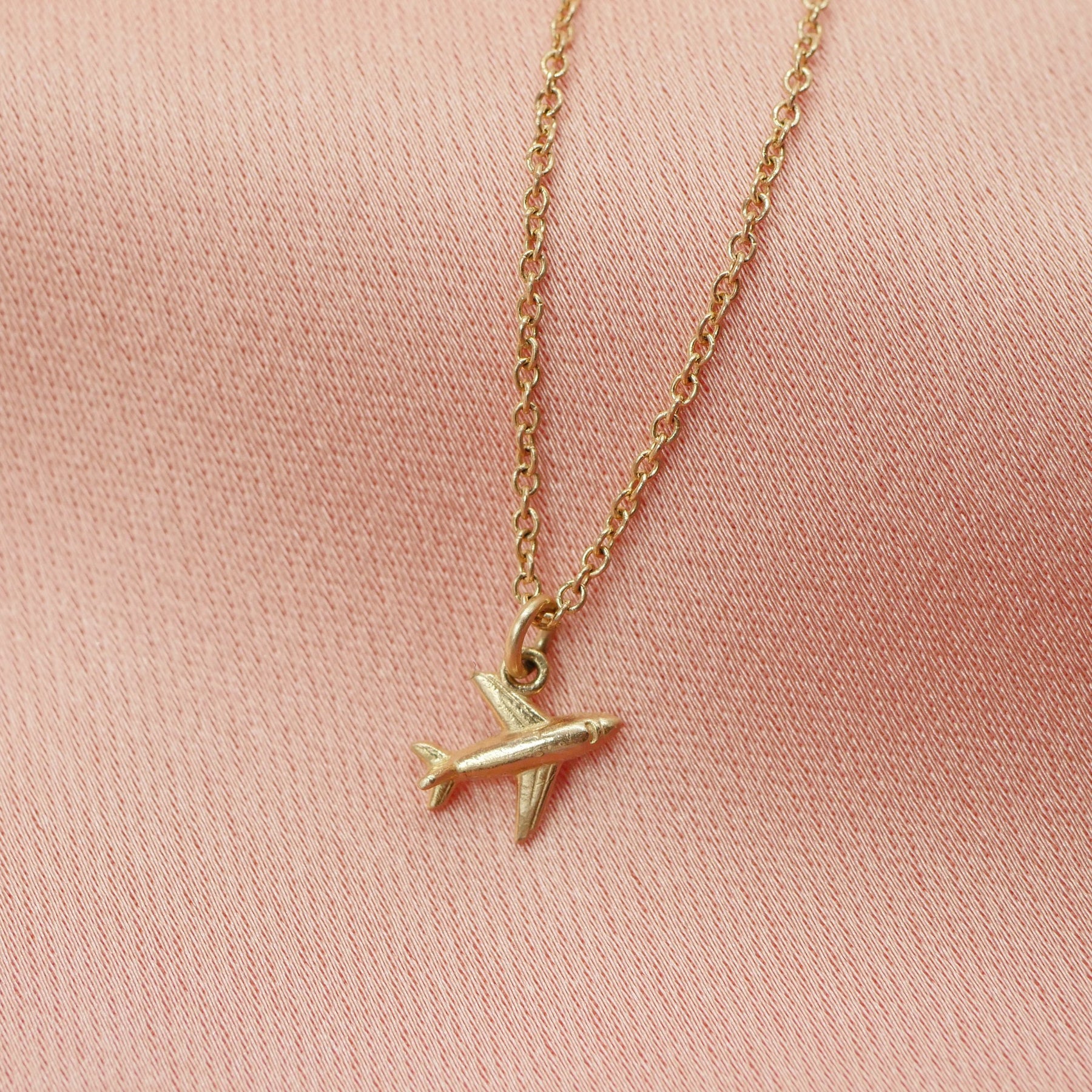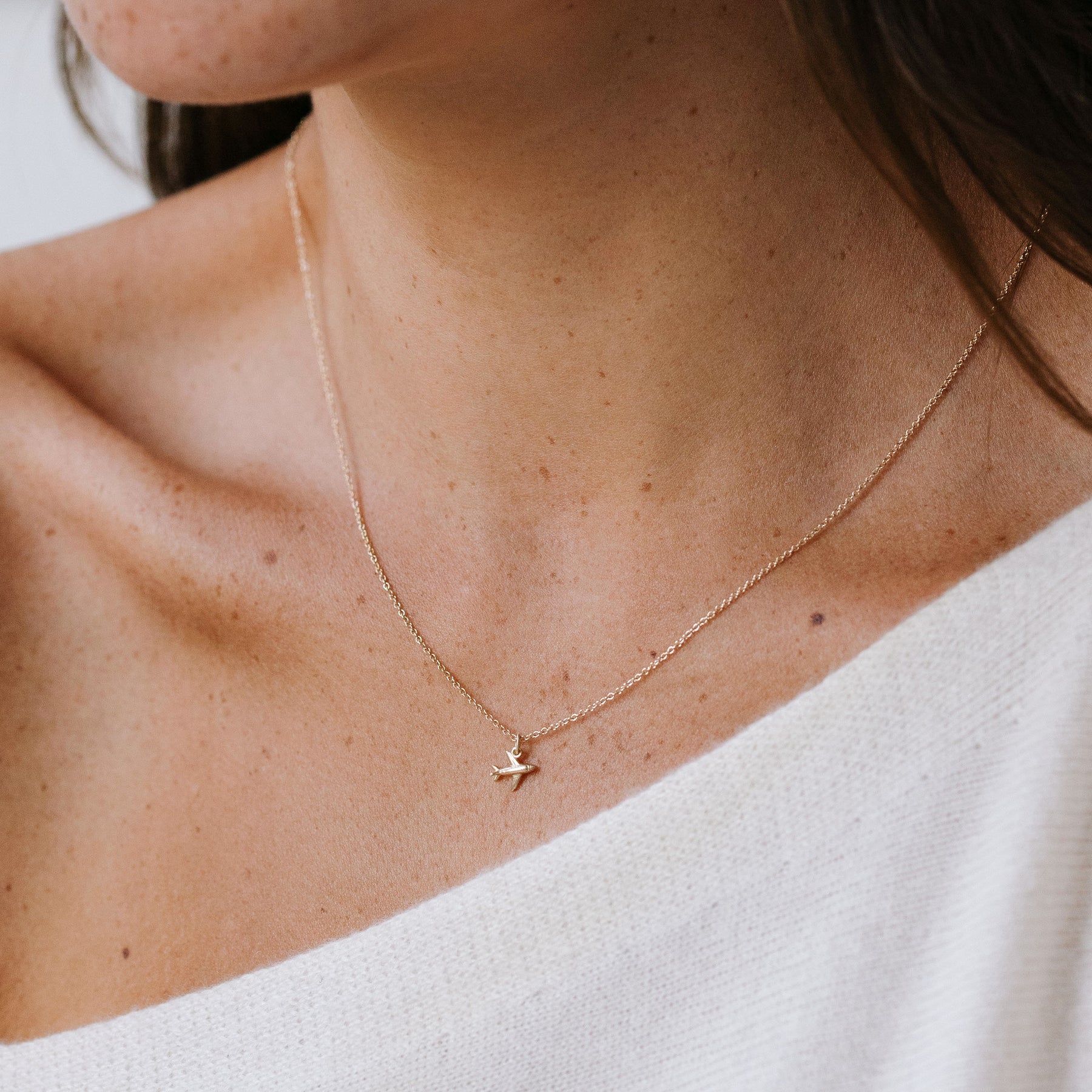 This little golden airplane necklace will have your heart soaring with joy! ✈️ Perfect for the adventurer in your life, its solid gold charm is sure to bring a smile to their face. Fly high in style with this little gold airplane charm necklace! The perfect everyday piece, made entirely of solid gold.