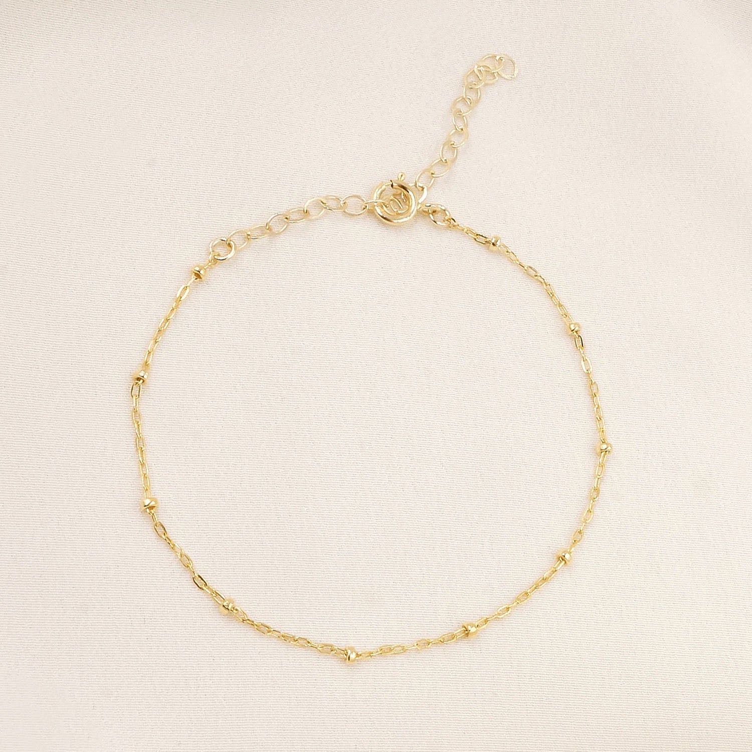 This lovely little bracelet is made from the prettiest satellite chain. A sturdy clasp and design make it a must-have for layering with other bracelets, or wear it alone for a simple look.