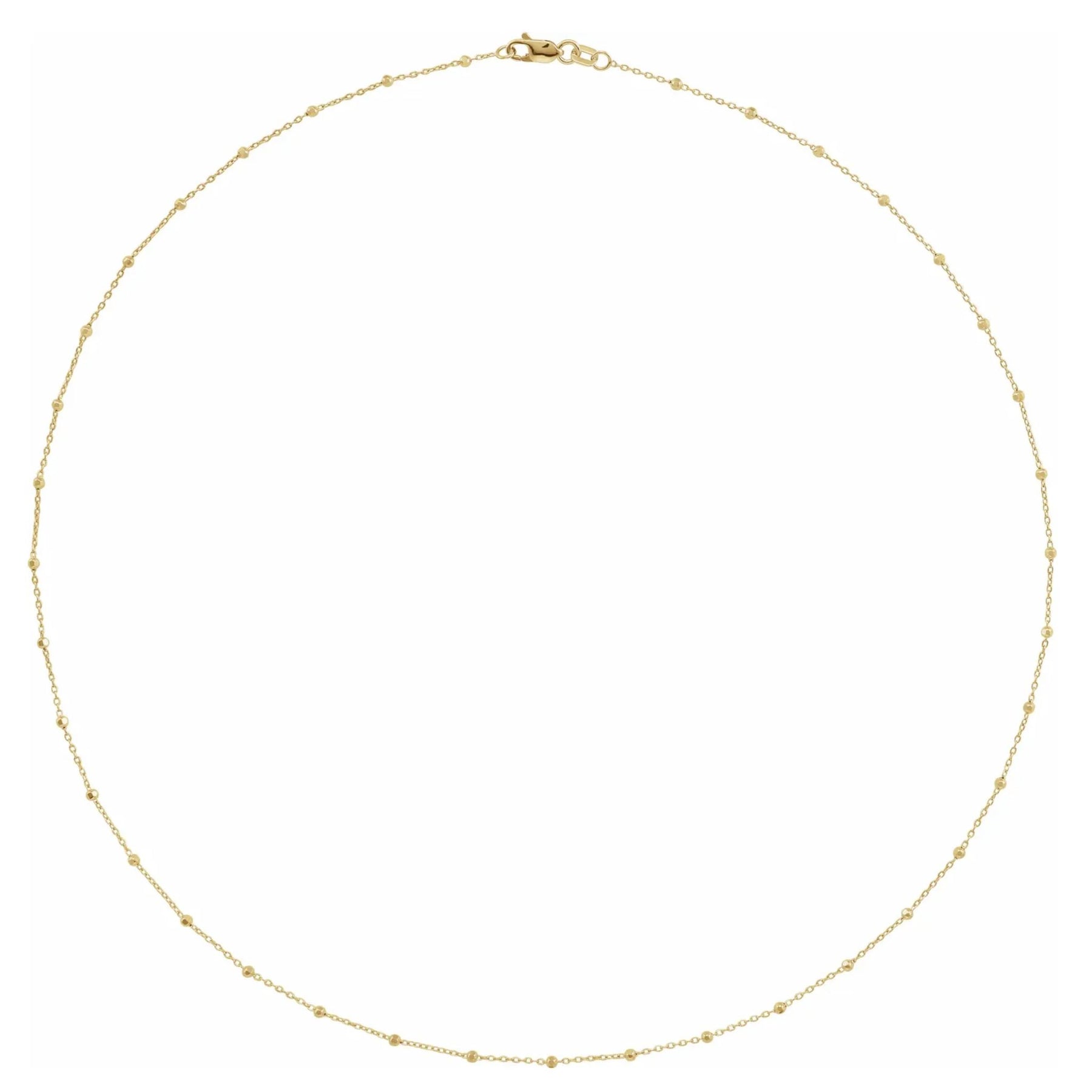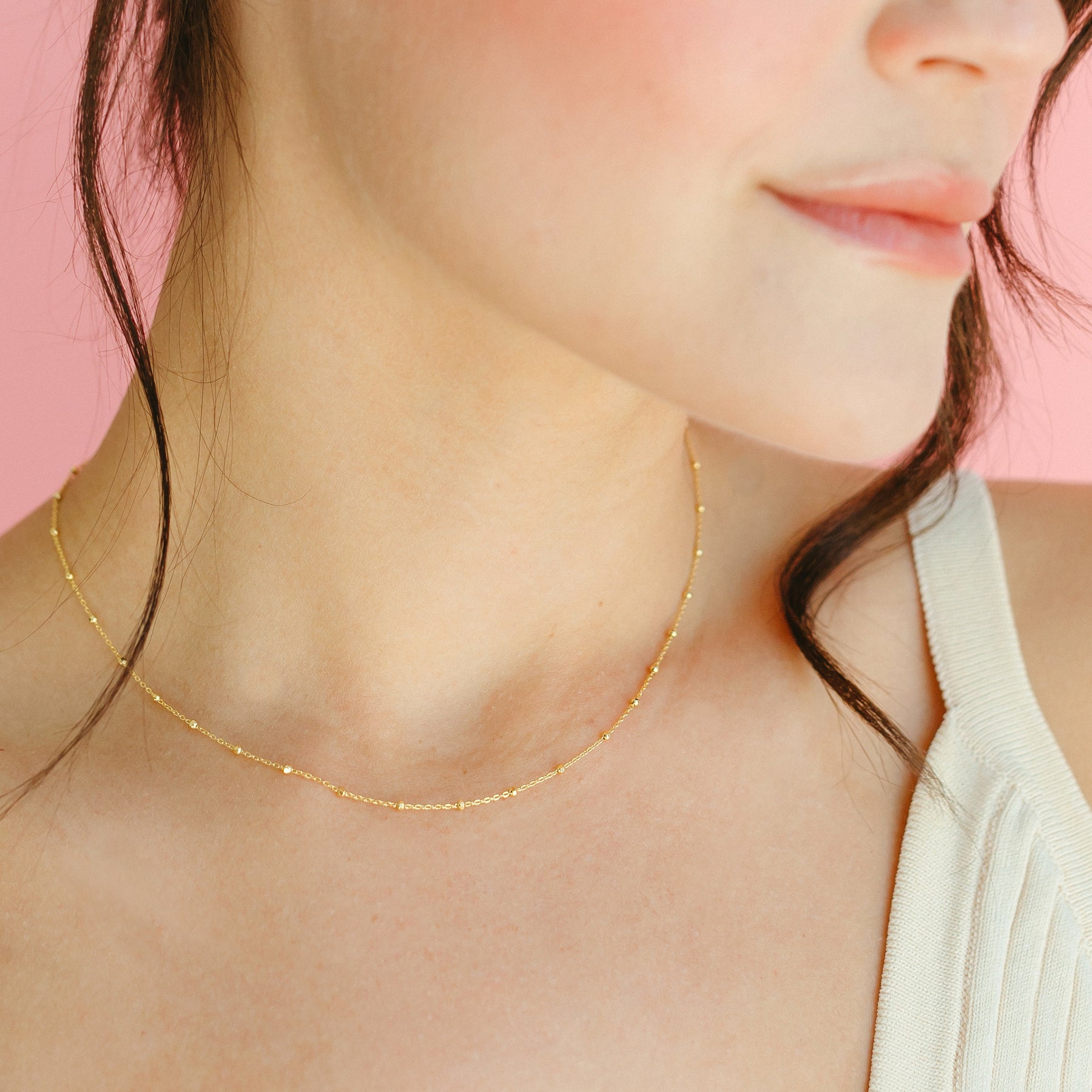 Our Solid Gold Satellite Necklace is a dainty forever piece you'll love for years to come. Wear it everyday, all day. It's the perfect piece to layer and looks equally as sweet worn solo.